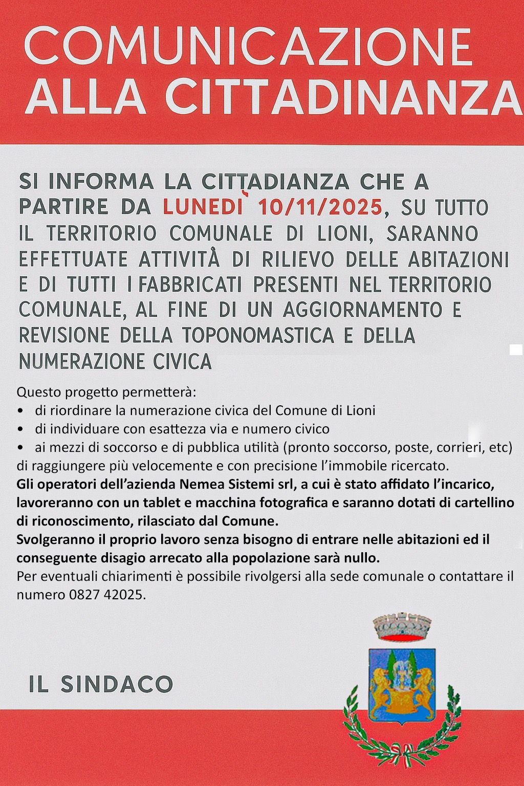 Il rilievo delle abitazioni e dei fabbricati, avviato dal Comune di Lioni, non è un semplice aggiornamento della toponomastica: è un intervento che migliora l’organizzazione del territorio e i servizi ai cittadini.